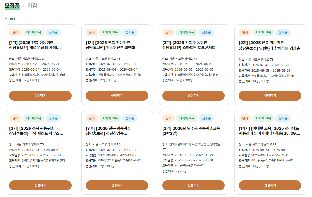 귀농귀촌 교육과정을 보면 다음과 같습니다.