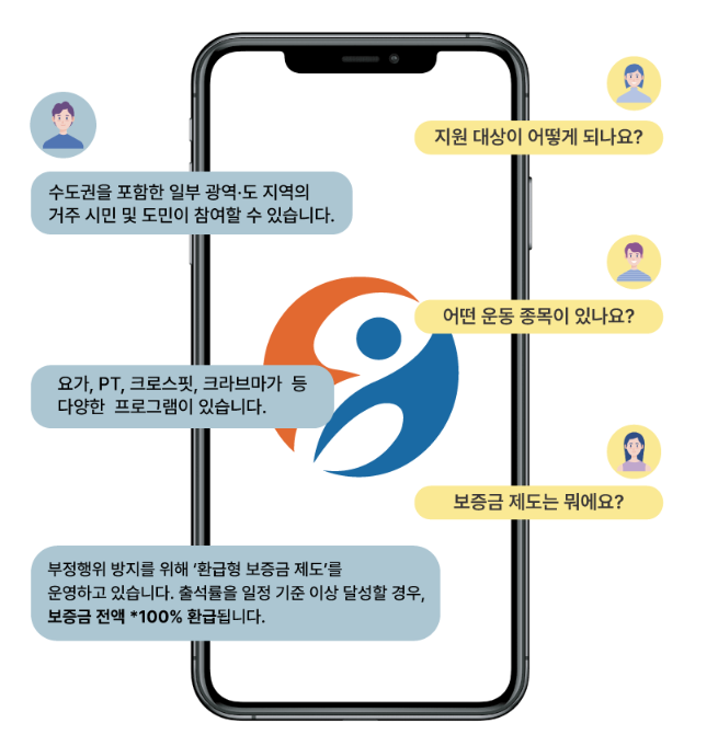 부정행위 방지를 위해 생활건강체육진흥회에서 환급형 보증금 제도를 운영하고 있고 운동횟수를 50% 이상 달성 했을 때 100% 환급되기 때문에 걱정 하실 필요가 없습니다.